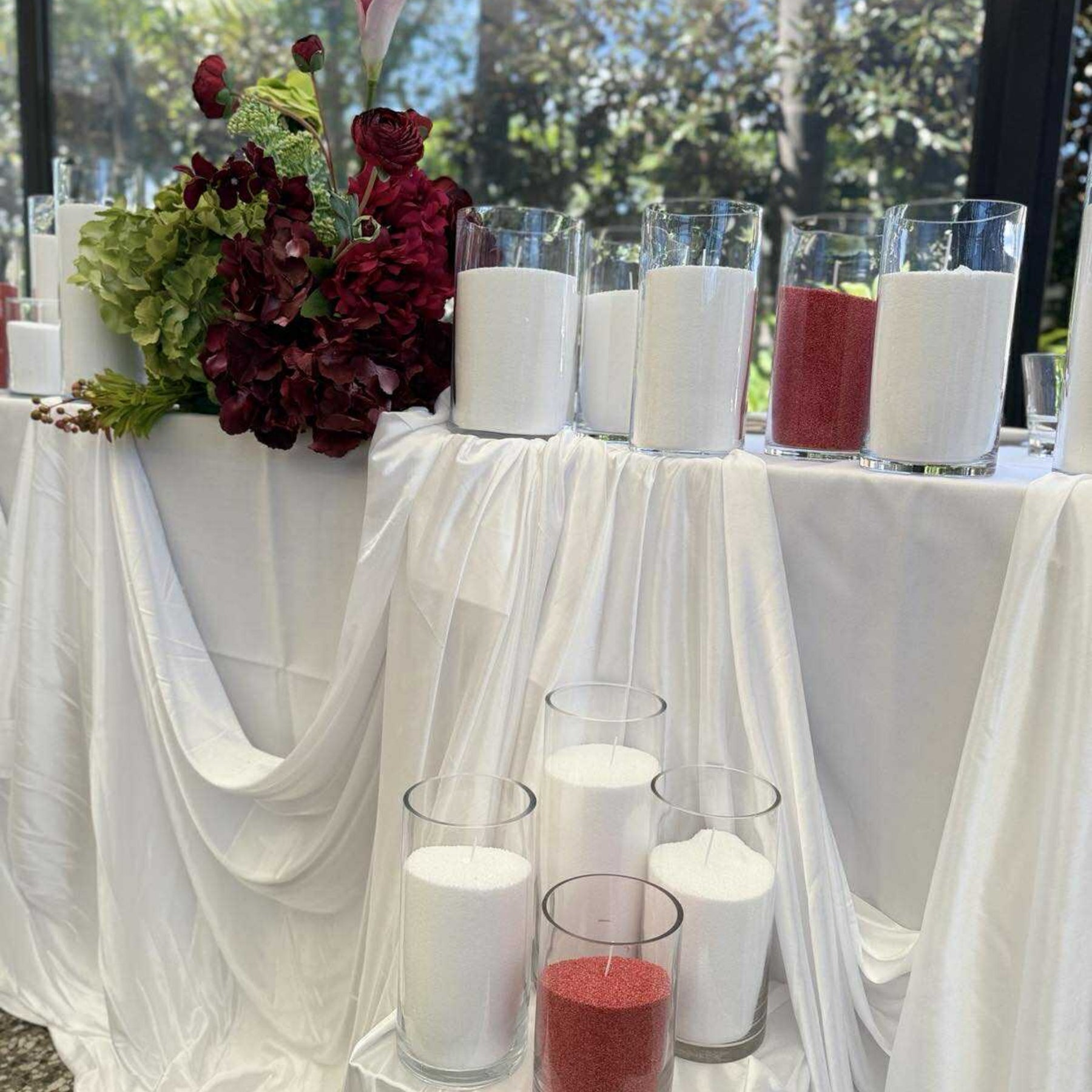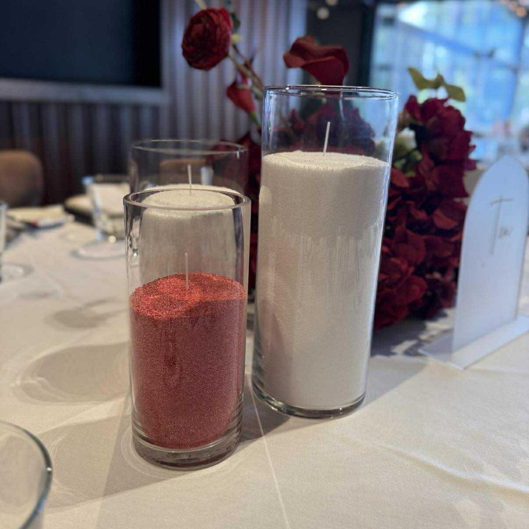Create a warm, elegant glow with our Red Sand Wax Candle Package, perfect for weddings, parties, and special events in Adelaide. These powdered wax candles make setup easy, simply pour the wax powder into a vase, place the supplied wick with about 1cm above the surface, and enjoy the beautiful candle-in-a-vase look.